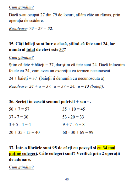 Invata adunarea si scaderea in intervalul 0–100 cu probleme si exercitii pentru clasa 1, cu si fara trecere peste ordin, explicate pas cu pas cu rezolvari.