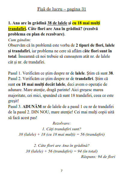 – Probleme cu una sau doua operatii pentru dezvoltarea gandirii logice